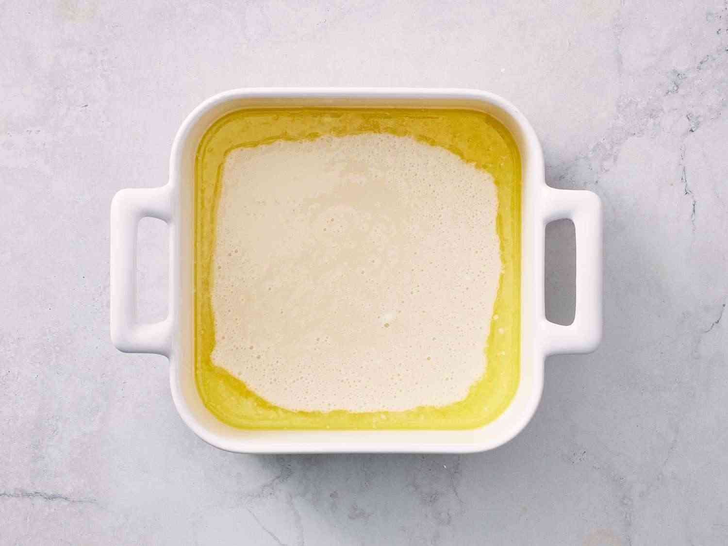 - Step 4:Pour batter into the prepared pan with melted butter. Dotdash Meredith Food Studios